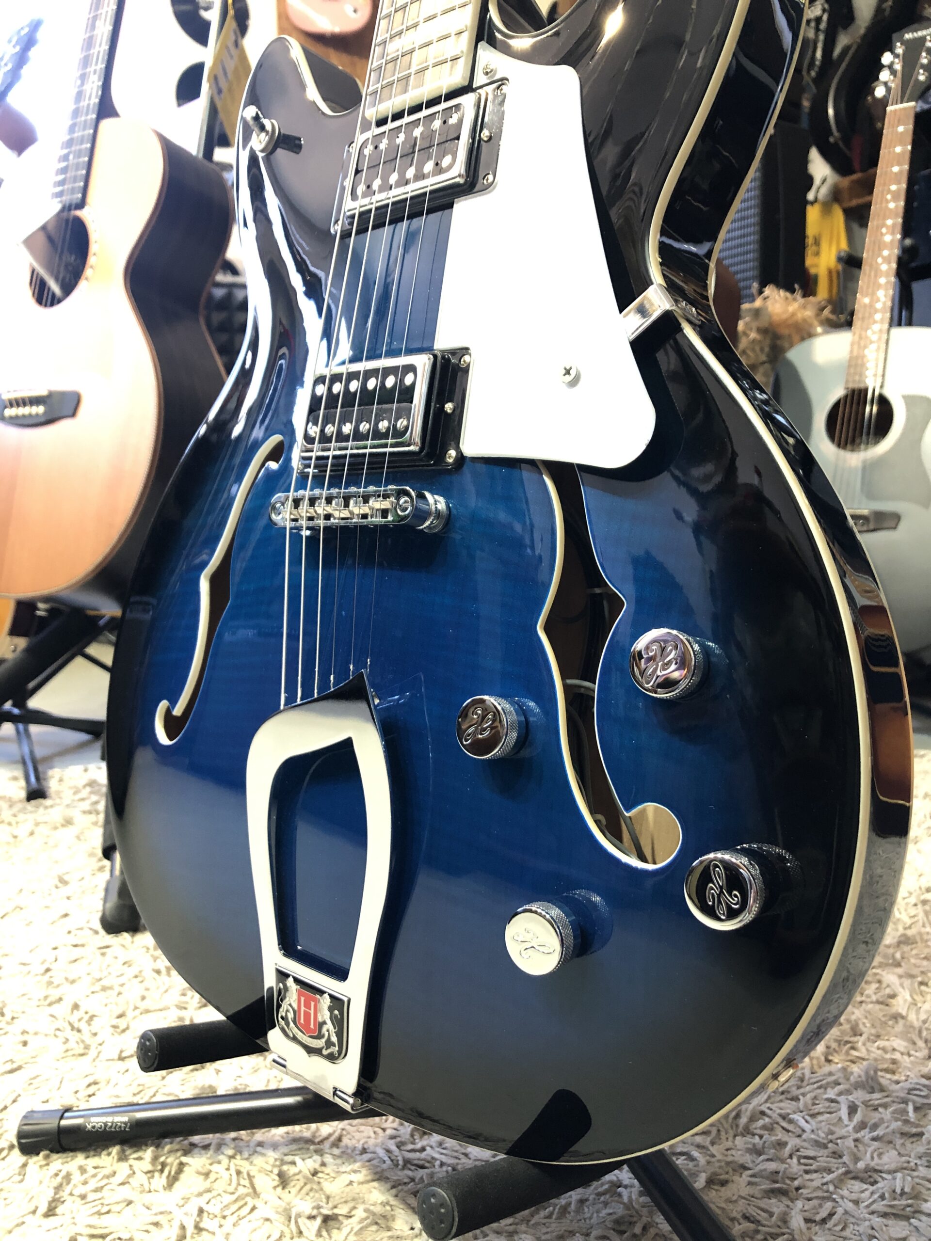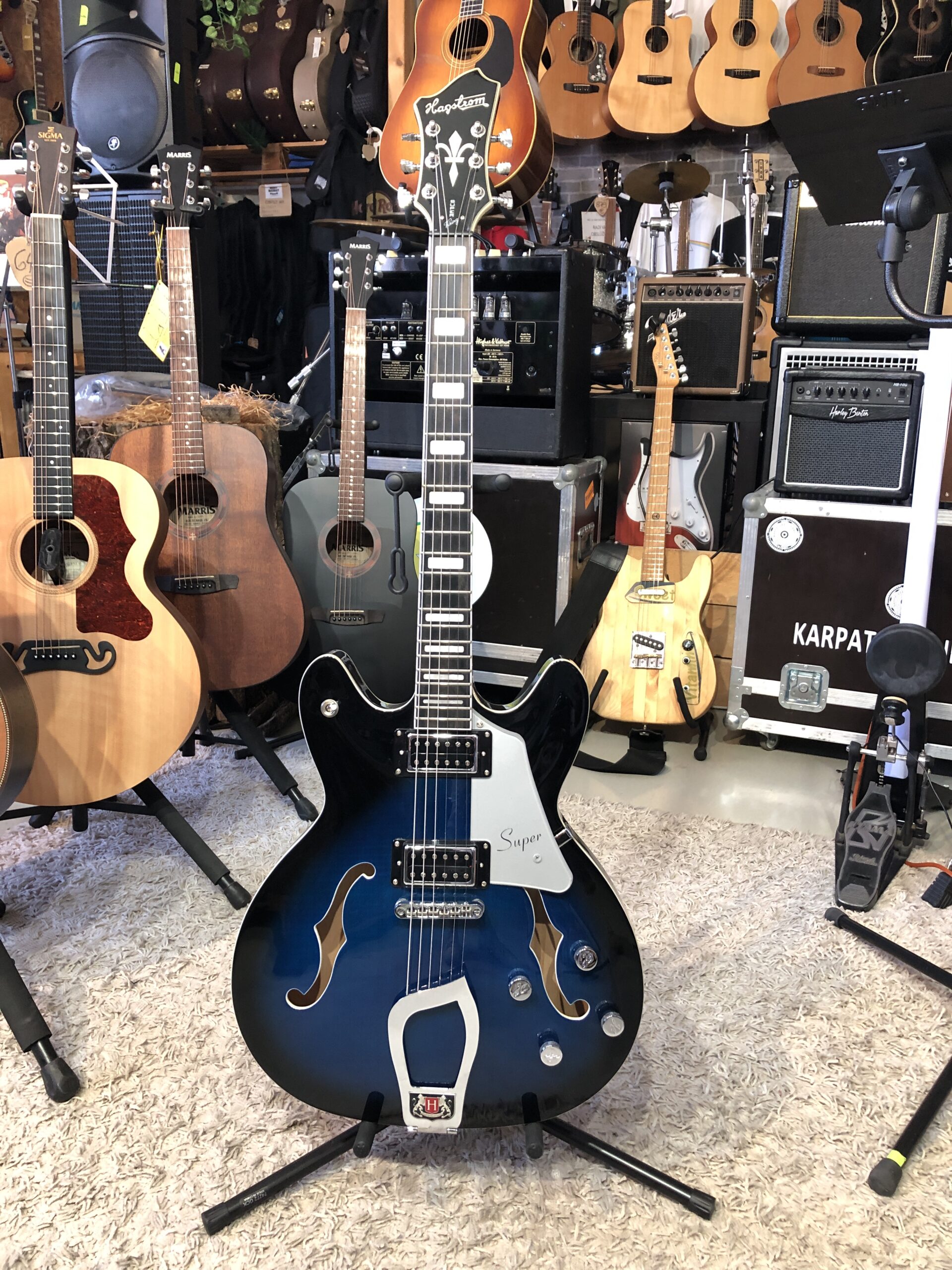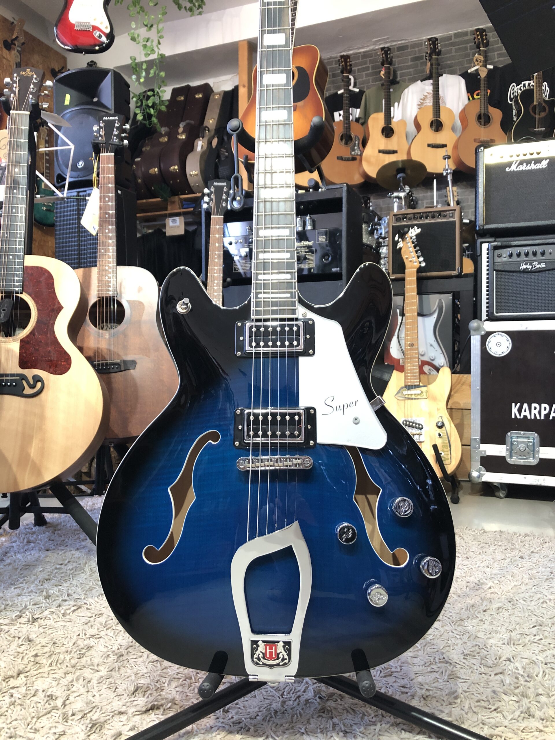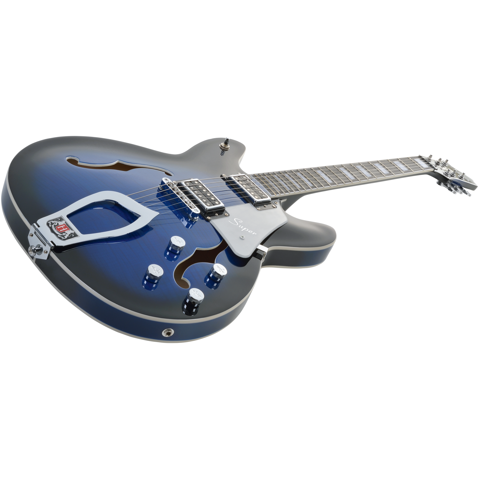 Vystavená na predajni, bez vád. Semiakustická gitara zo série Super Viking. Duté telo gitary je vyrobené z javora s vrchnou doskou zo žíhaného javora a je vybavené dvojitým výrezom pre ľahký prístup k vrchným pražcom. Celé telo je vyhotovené v lesklom laku.